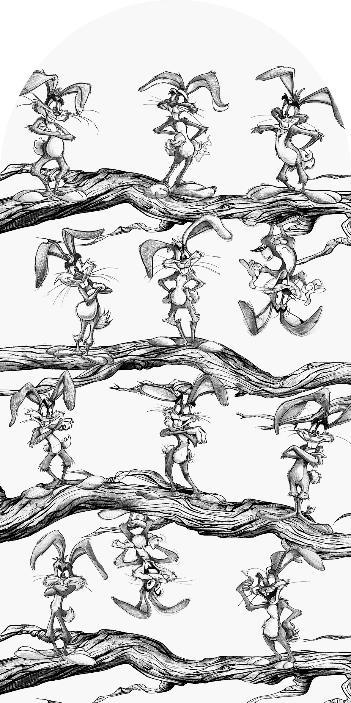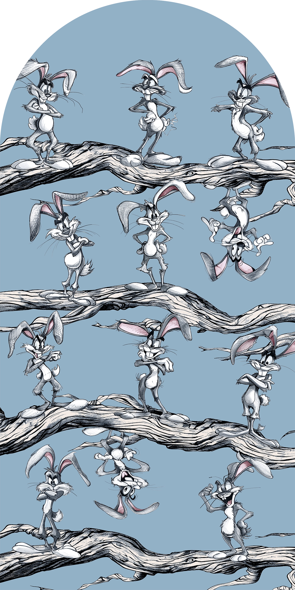 Dowcipna i dynamiczna propozycja, idealna do pokoju dziecka. Przedstawia charakterne, rysunkowe króliki balansujące na gałęziach co wprowadza do wnętrza energię i bajkową atmosferę. Pobudza wyobraźnię i bawi detalem. Artystyczna tapeta ścienna PREMIUM z motywem graficznym do zastosowania na ścianie, kaflach, meblach – w kształcie łuku o wymiarach 240×120 cm.