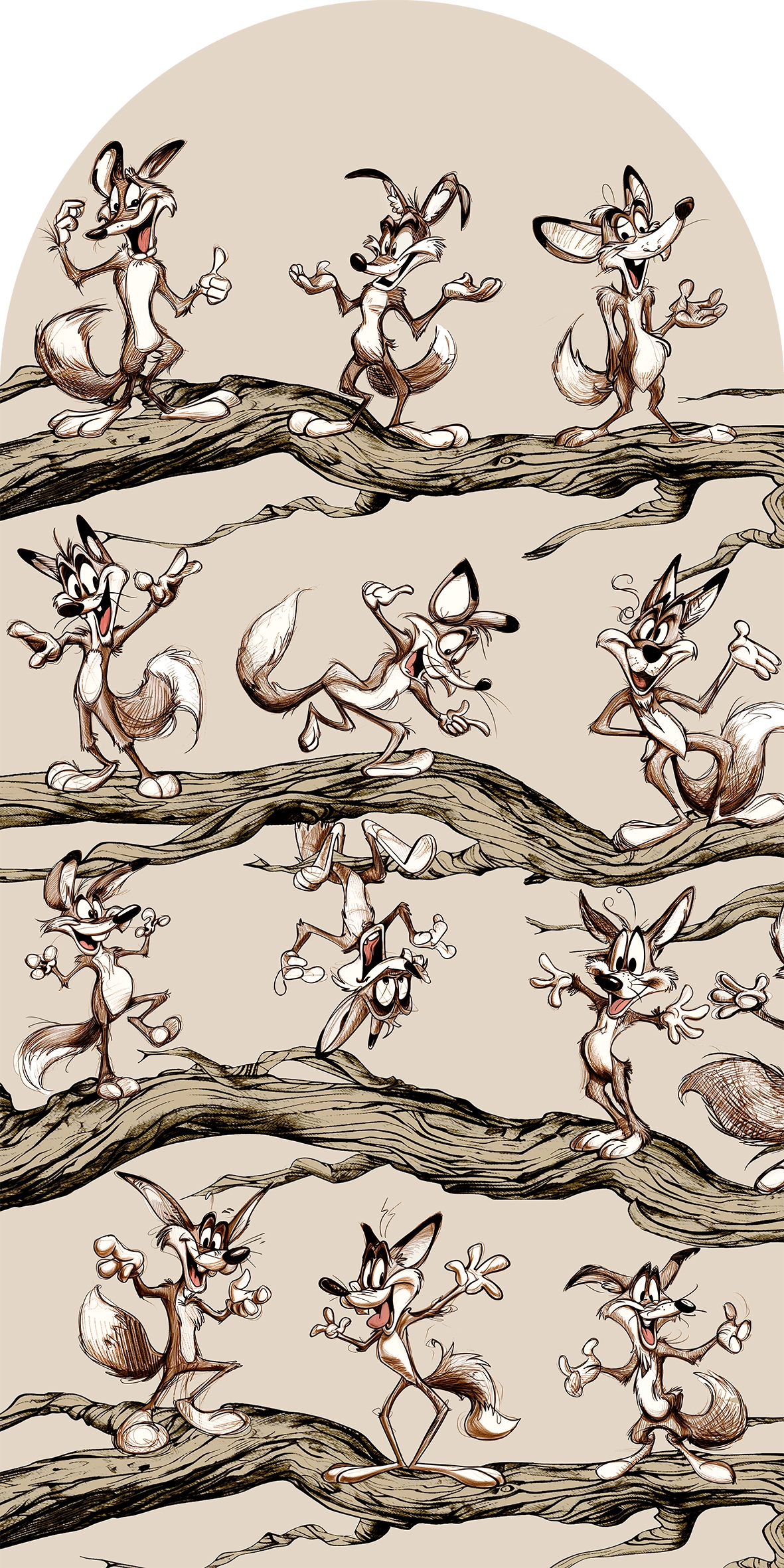 Dowcipna i dynamiczna propozycja, idealna do pokoju dziecka. Przedstawia charakterne, rysunkowe lisy balansujące na gałęziach co wprowadza do wnętrza energię i bajkową atmosferę. Pobudza wyobraźnię i bawi detalem. Artystyczna tapeta ścienna PREMIUM z motywem graficznym do zastosowania na ścianie, kaflach, meblach – w kształcie łuku o wymiarach 240×120 cm.