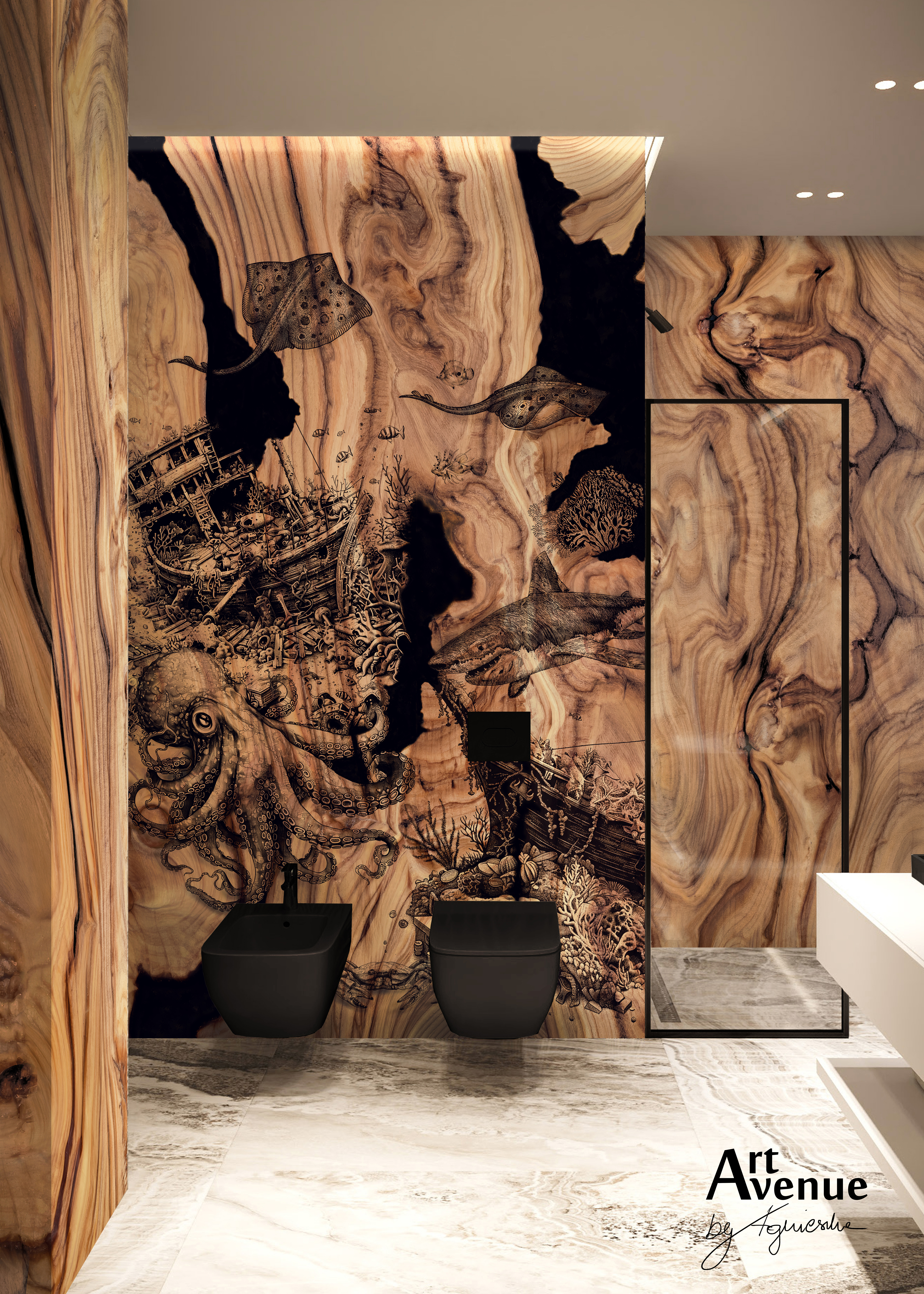Dynamiczne, organiczne wzory i morskie detale tworzą spektakularny efekt 3D. Naturalna paleta barw podkreśla głębię i elegancję wnętrza. Idealna do nowoczesnych i kontrastowych przestrzeni z charakterem. Artystyczna tapeta ścienna PREMIUM z motywem graficznym – na wymiar.