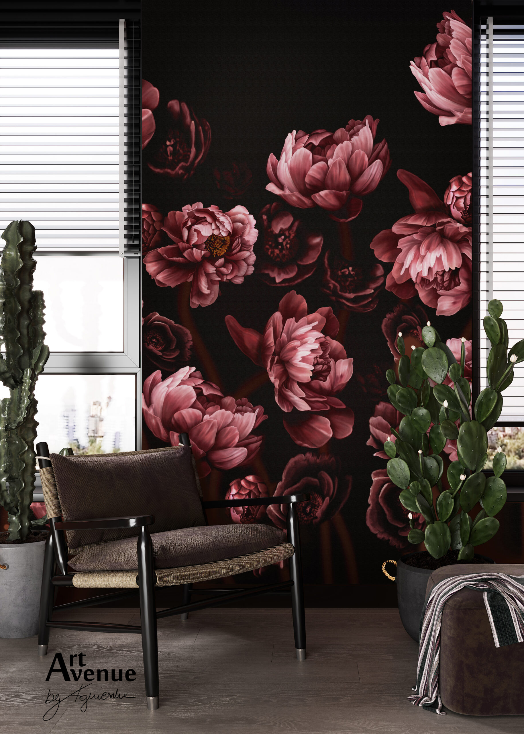 Jest kolejnym wariantem wzoru #21 w różowych barwach peonii, ale z pominięciem łodyg i o licznym rozmieszczeniu kwiatów z możliwością powielania – panele 1 i 2 (układ zamknięty), panele 3 i 4 (kompozycja otwarta). Artystyczna tapeta ścienna PREMIUM z motywem kwiatowym – na wymiar.