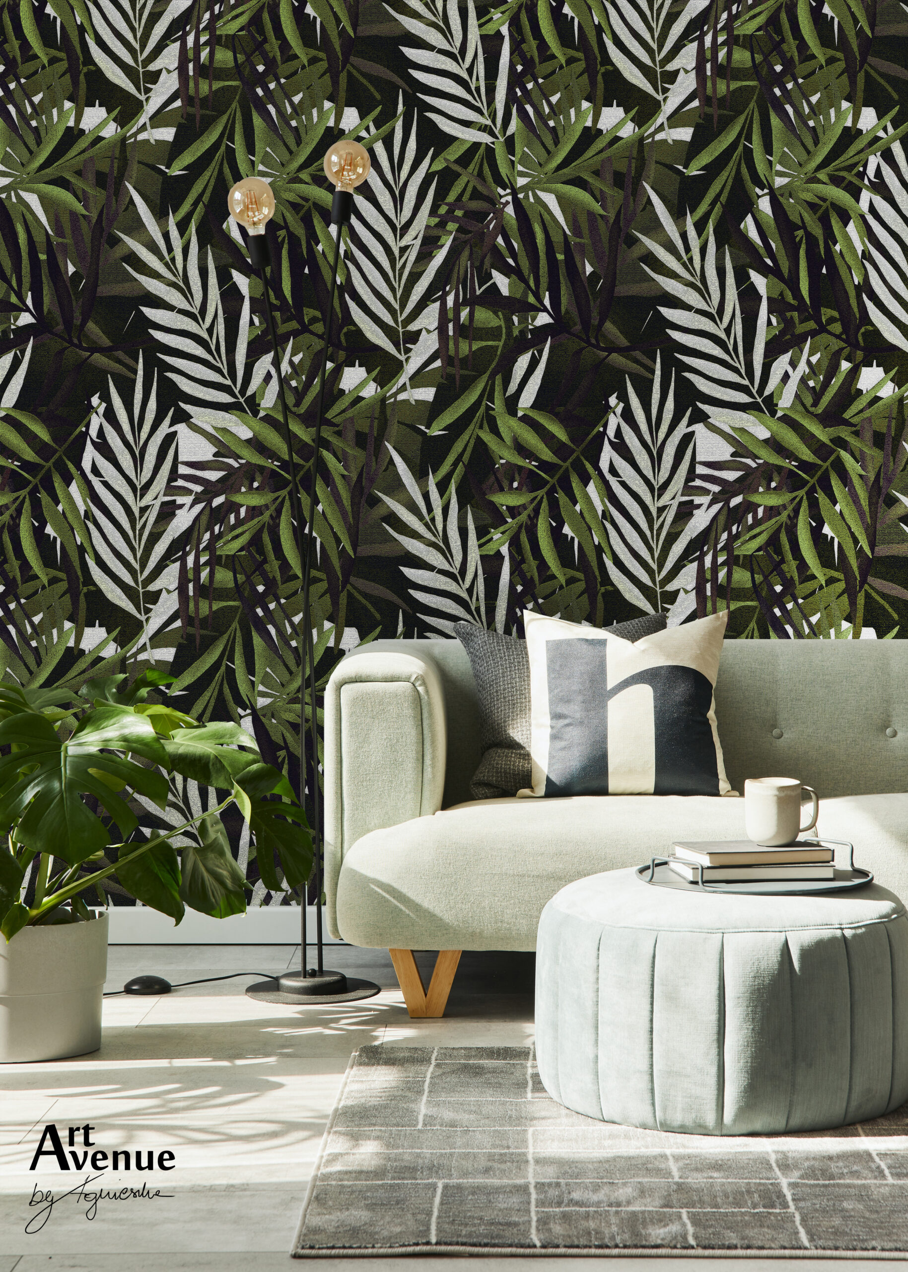 Grafika z tropikalnym zatrzęsieniem to zastępstwo w dobrym guście dla popularnej monstery. Na różnych płaszczyznach  tonów i tekstur opracowano oryginalny efekt, którego zastosowanie całkowicie odmieni wnętrze. Artystyczna tapeta ścienna PREMIUM z motywem graficznym – na wymiar.