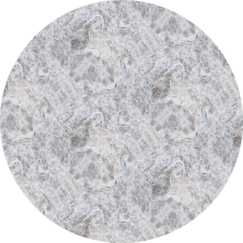 Kompozycja w tonacji niebieskiej i fioletowo szarej o zagęszczonym białym wzorze zbudowanym linearnie na podziałach heksagonalnych. To swoista abstrakcja, z której możemy odczytać grafiki czapli i innych ptaków. Artystyczna tapeta ścienna PREMIUM z motywem ornitologicznym – na rolki.