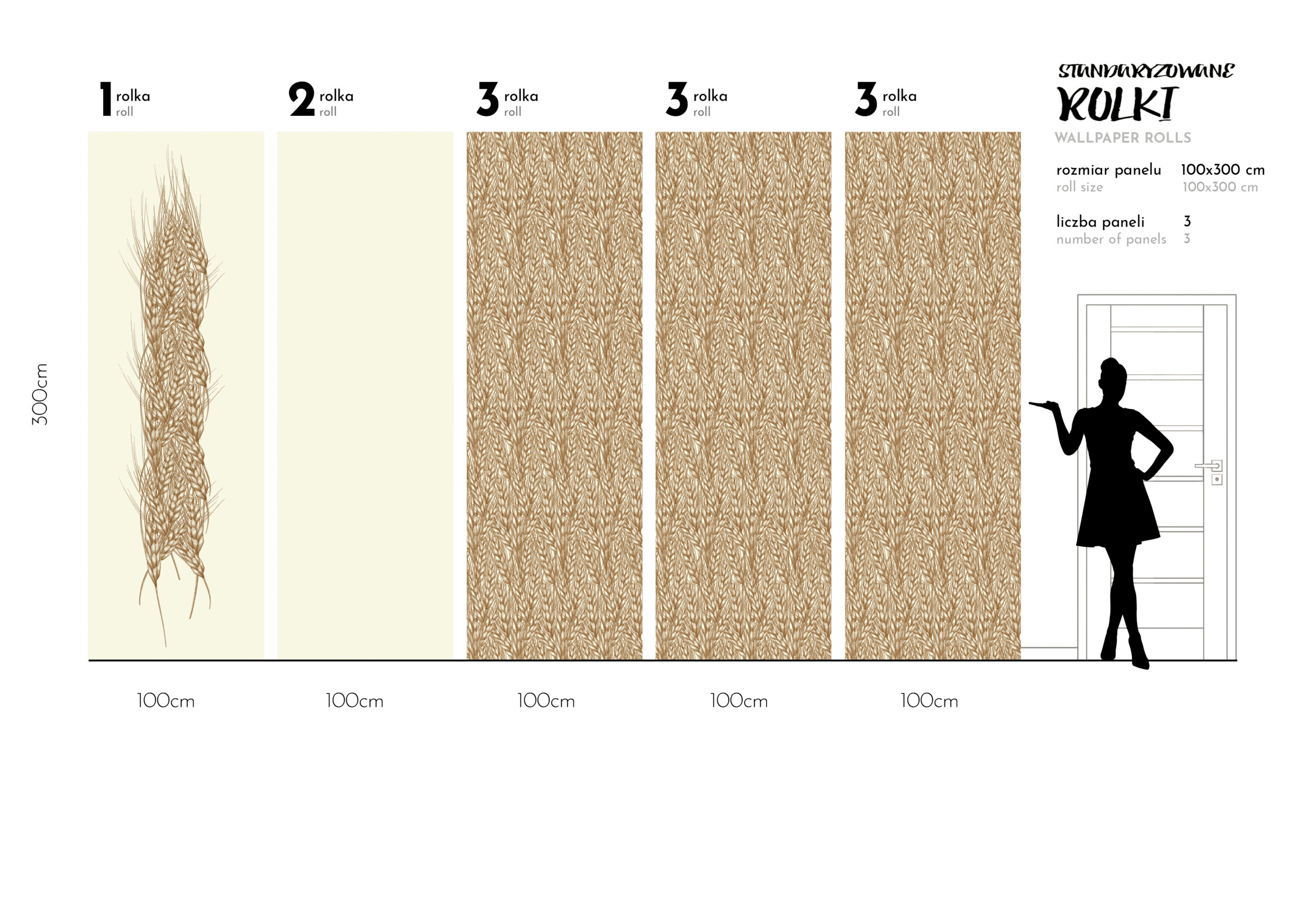 To tapety o stałej 1m szerokości brytów wysokich na 3m z ustaloną grafika pod wymiary 300 × 500 cm, czasami