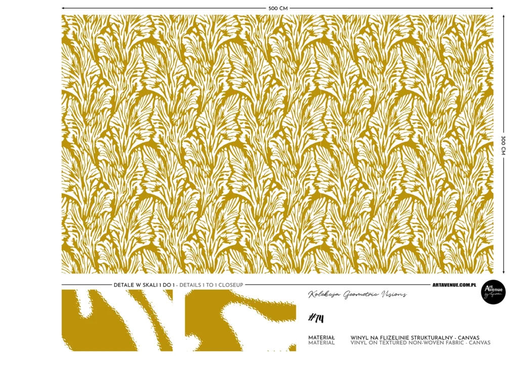 To dekoracyjny wzór organiczny o dynamicznej kompozycji. Tapeta zaprojektowana jako pojedyncze panele 1×3 m z powtarzalnym układem. Możliwość łączenie we wszystkich kierunkach daje pełna swobodę aranżacji. Artystyczna tapeta ścienna PREMIUM z motywem graficznym – na rolki.