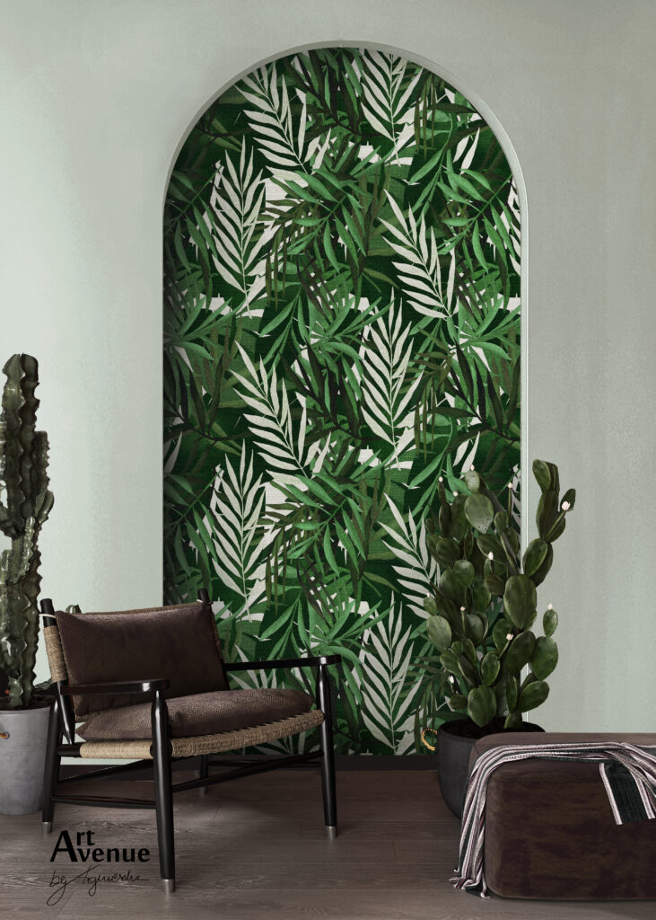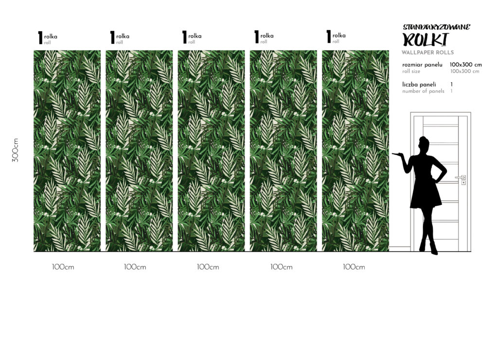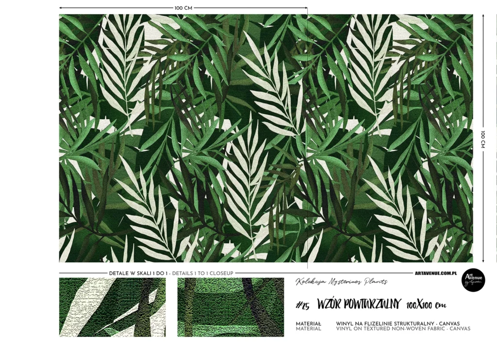 Grafika z tropikalnym zatrzęsieniem to zastępstwo w dobrym guście dla popularnej monstery. Na różnych płaszczyznach  tonów i tekstur opracowano oryginalny efekt, którego zastosowanie całkowicie odmieni wnętrze. Artystyczna tapeta ścienna PREMIUM z motywem graficznym – na rolki.