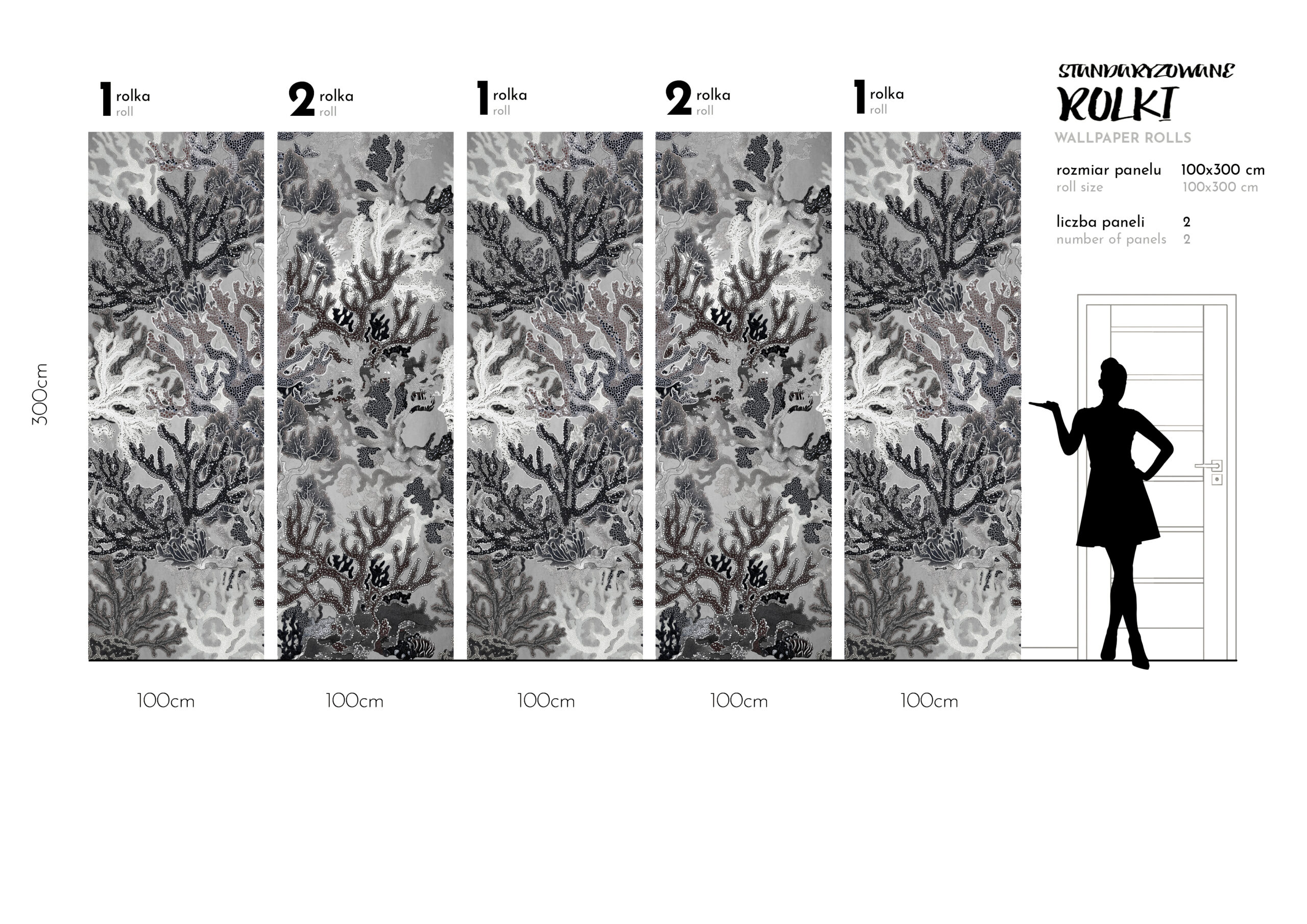 To tapety o stałej 1m szerokości brytów wysokich na 3m z ustaloną grafika pod wymiary 300 × 500 cm, czasami