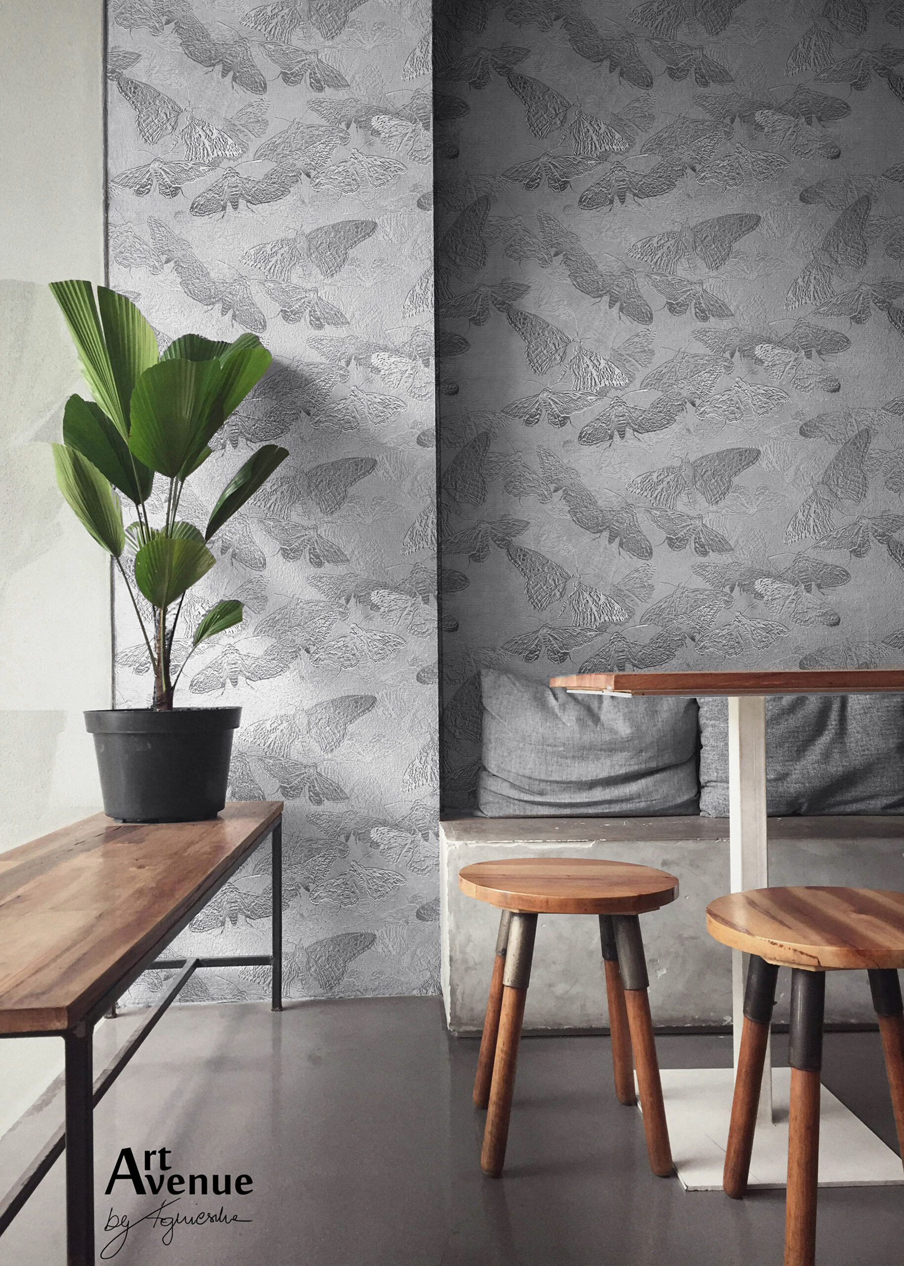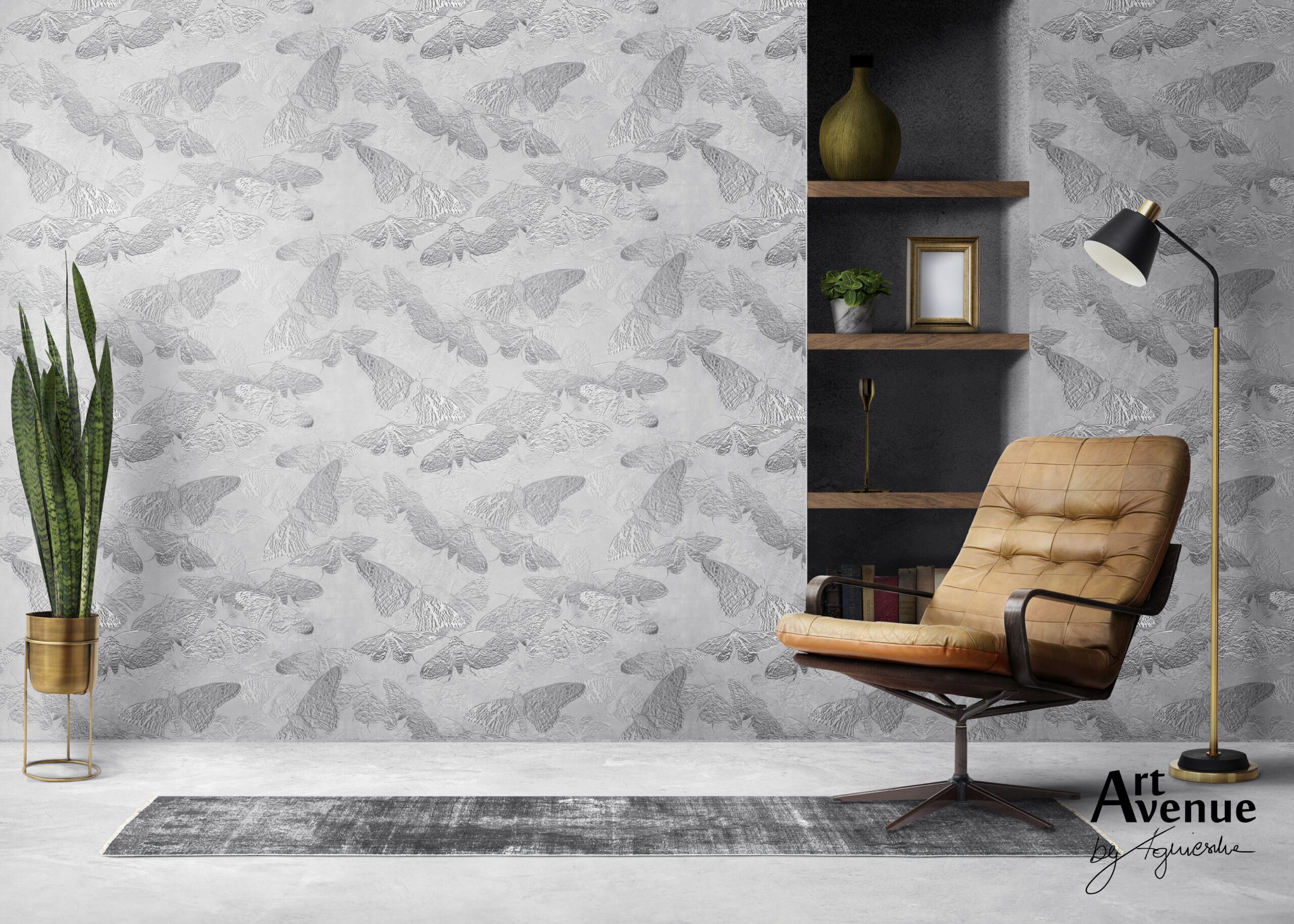 Zagęszczona wersja latających ciem wprowadza więcej blasku i dynamiki do szarości, pozwala naszym oczom lepiej uchwycić ich rysunek patrząc z bliska. Artystyczna tapeta ścienna PREMIUM z reliefowym wzorem – na rolki.