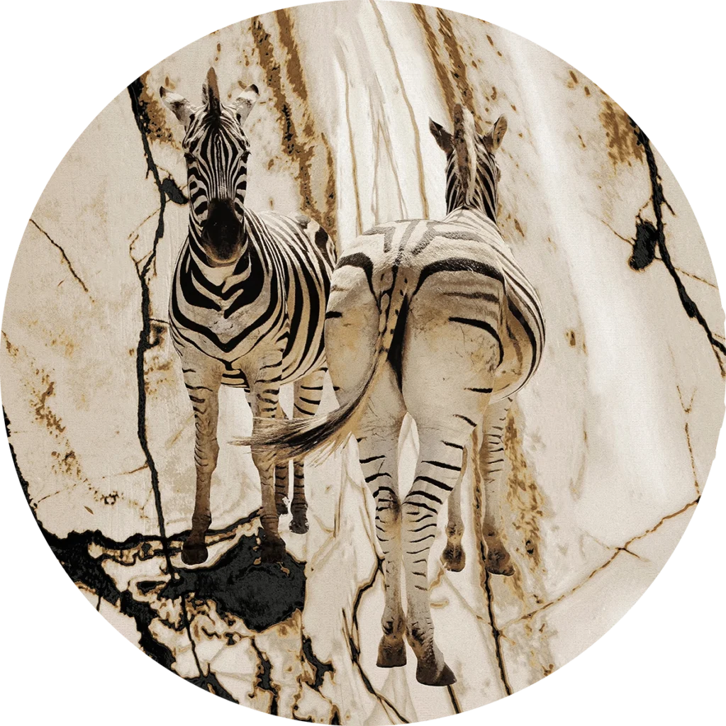 Humorystyczny motyw zebr i marmurkowego tła o jasnych, ciepłych tonach w oczywisty, ale nieprzesadzony sposób wskazuje swe przeznaczenie. Grafika pozwala na wybór również czystego marmurowego tła. Artystyczna tapeta ścienna PREMIUM z organicznie wtopionym wzorem – na rolki.