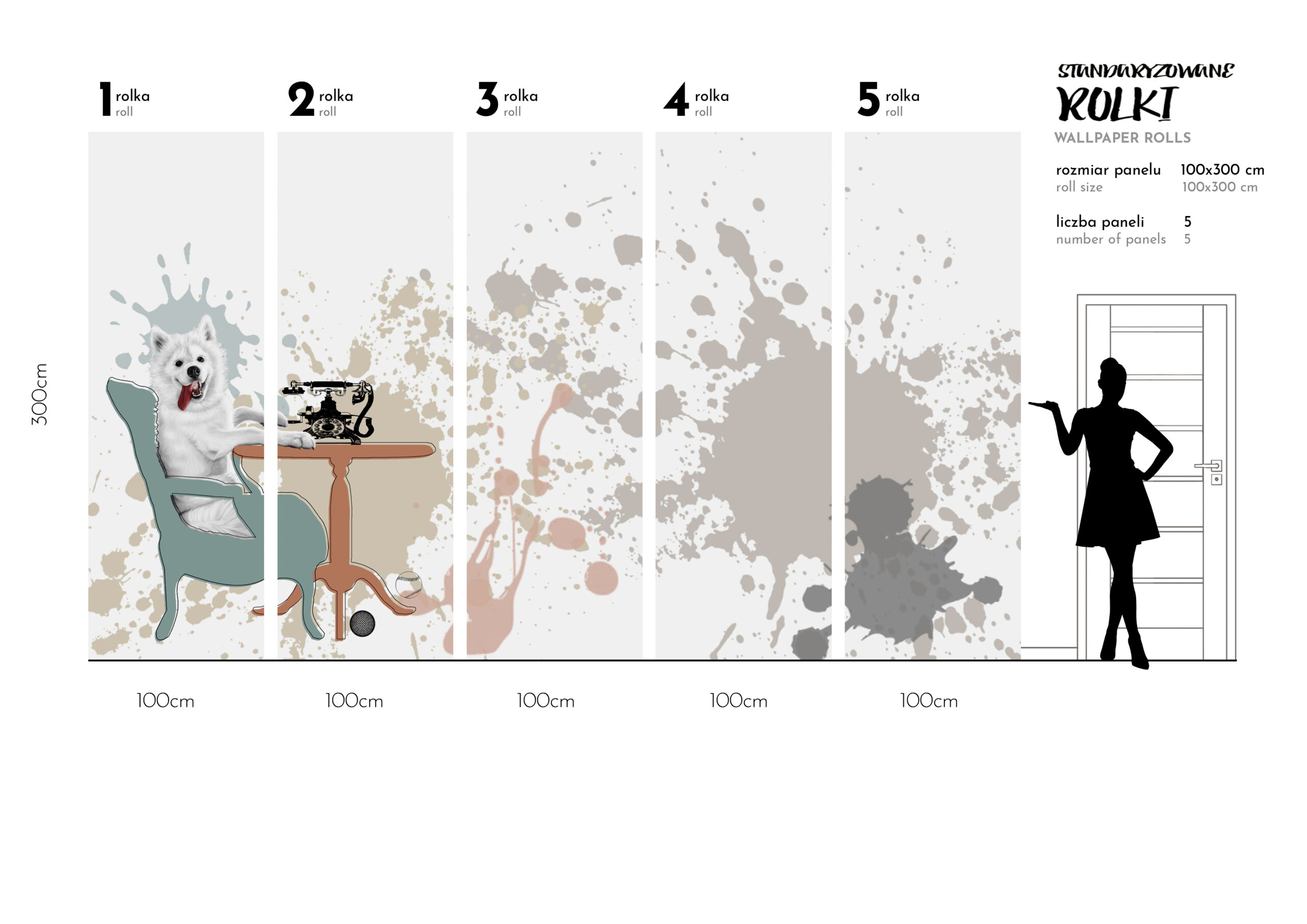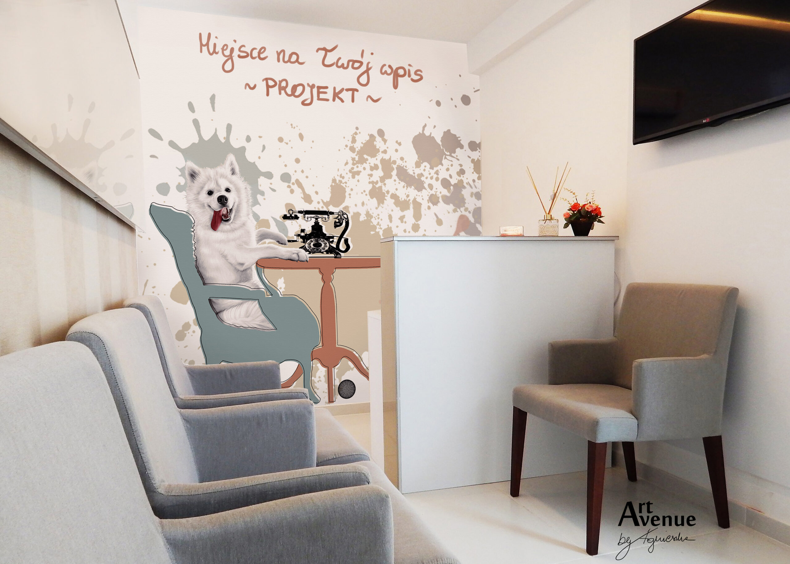 Tematyczna propozycja grafiki z motywem wesołego psa stworzona z myślą o gabinetach weterynaryjnych (analogicznie do wzoru#79) jednakże w ofercie pojawia się sugestia personalizacji – miejsce na Twój wpis/cytat/grafikę/logo firmy. Artystyczna tapeta ścienna PREMIUM z motywem graficznym – na rolki.