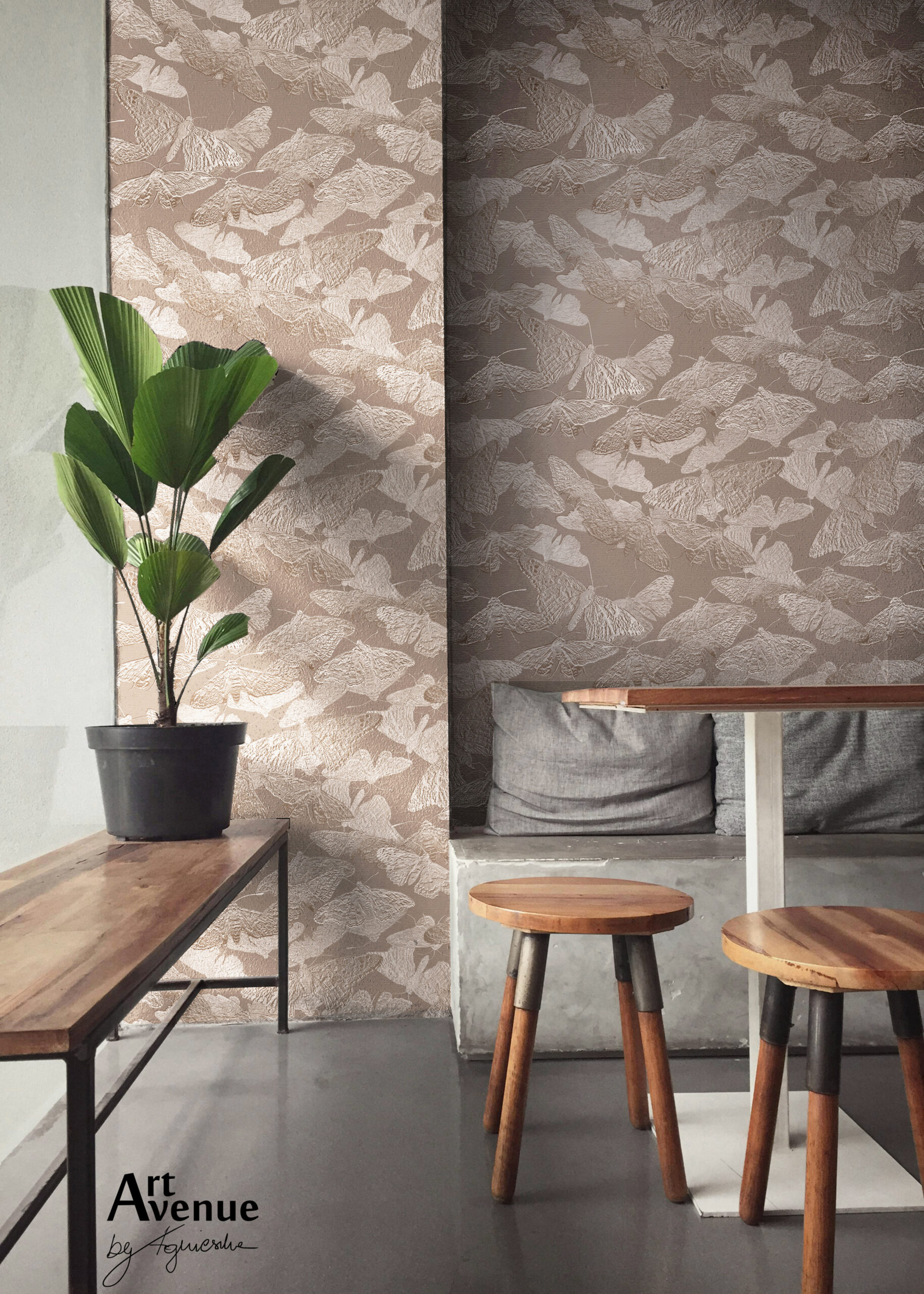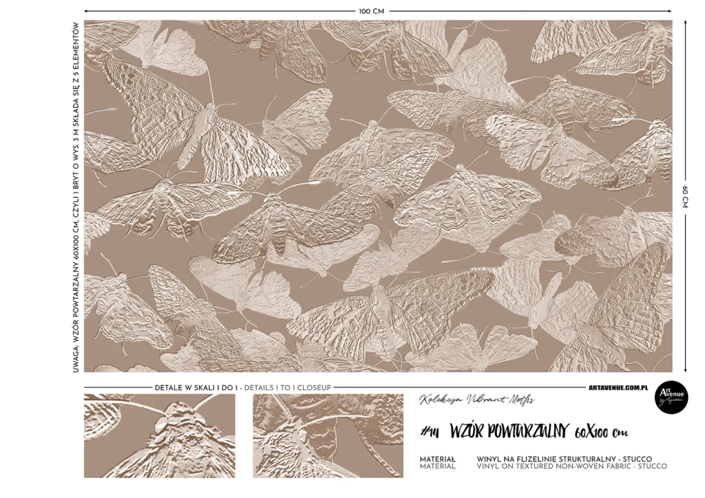 Zagęszczona wersja z kolekcji latających ciem w modnym kolorze taupe dodaje ścianie blasku i ponadczasowego wyrazu. Artystyczna tapeta ścienna PREMIUM z reliefowym wzorem – na wymiar.
