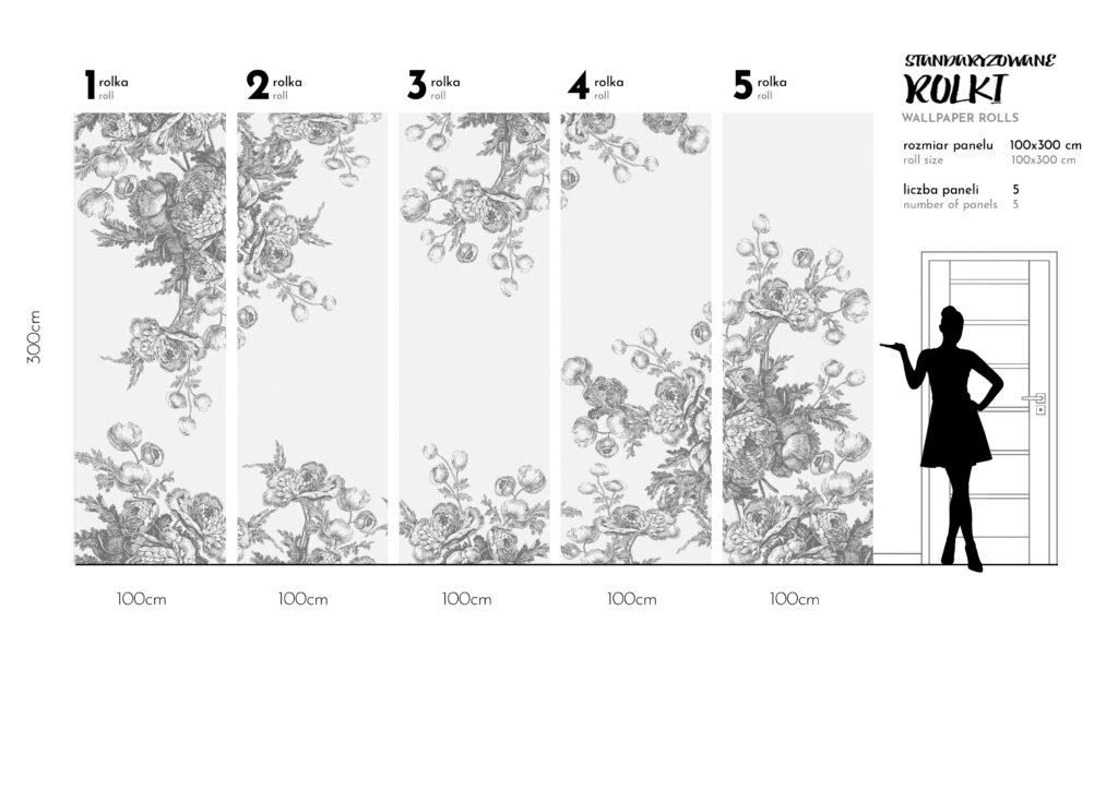 To tapety o stałej 1m szerokości brytów wysokich na 3m z ustaloną grafika pod wymiary 300 × 500 cm, czasami
