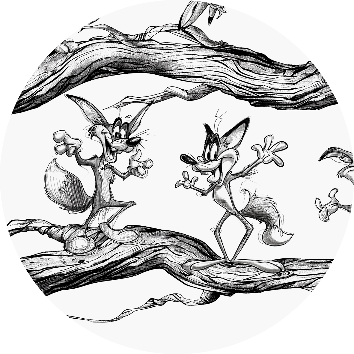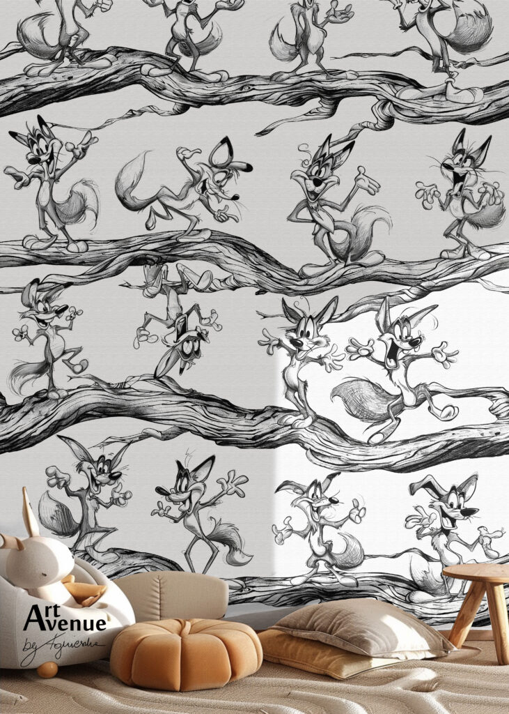 Dowcipna i dynamiczna propozycja, idealna do pokoju dziecka. Przedstawia charakterne, rysunkowe lisy balansujące na gałęziach co wprowadza do wnętrza energię i bajkową atmosferę. Pobudza wyobraźnię i bawi detalem. Artystyczna tapeta ścienna PREMIUM z motywem graficznym do zastosowania na ścianie, kaflach, meblach – w kształcie koła o średnicy 120 cm.