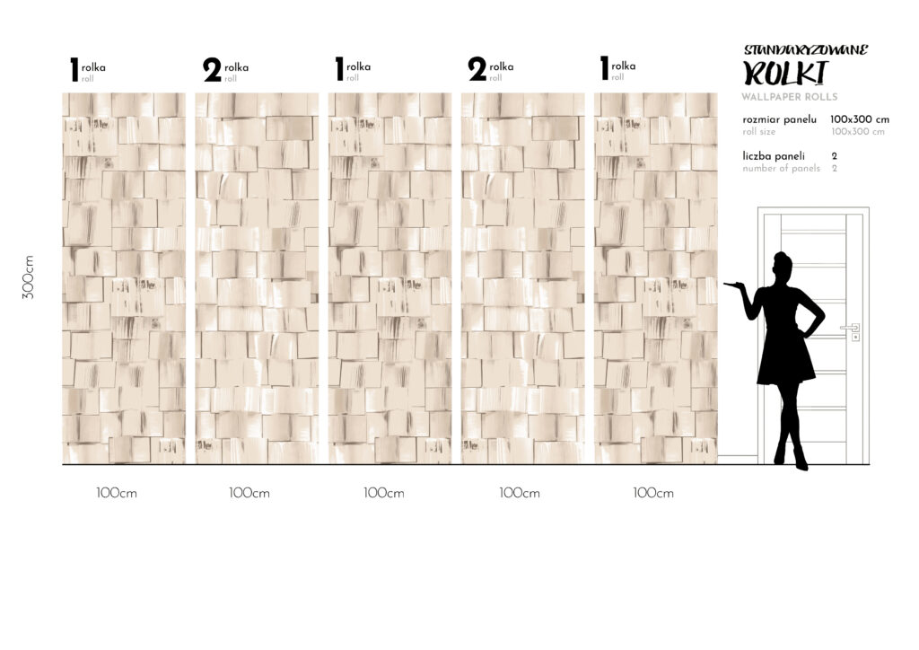 To tapety o stałej 1m szerokości brytów wysokich na 3m z ustaloną grafika pod wymiary 300 × 500 cm, czasami