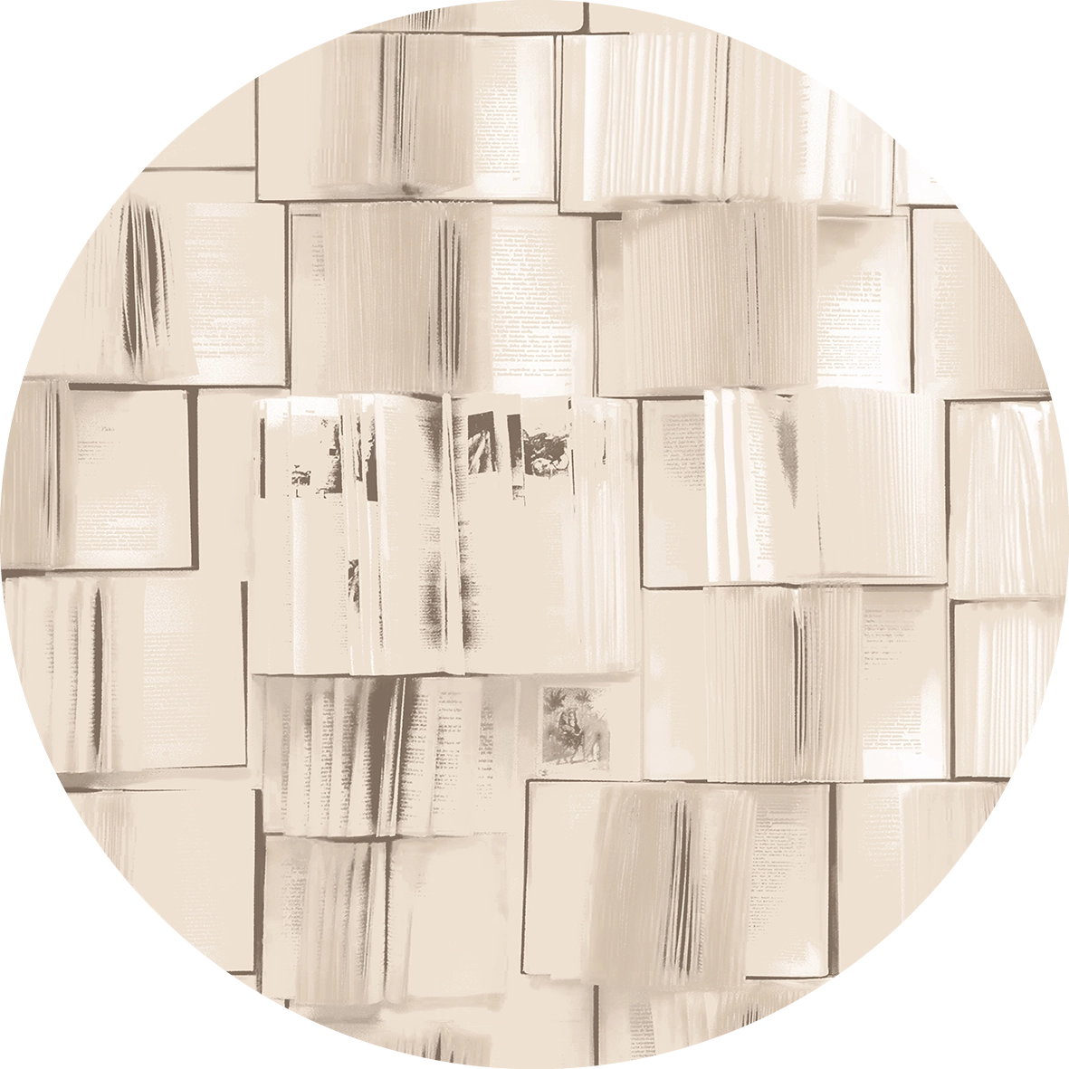 Stanowi pierwszy wariant kolekcji dla pasjonatów – propozycja dla wielbicieli książki, którą nasycono migdałowym kolorem z liniowym kontrastem i iluzją treści oraz z efektem postarzenia. Tematyczne urozmaicenie ściany. Artystyczna tapeta ścienna PREMIUM z motywem graficznym do zastosowania na ścianie, kaflach, meblach – w kształcie koła o średnicy 120 cm.