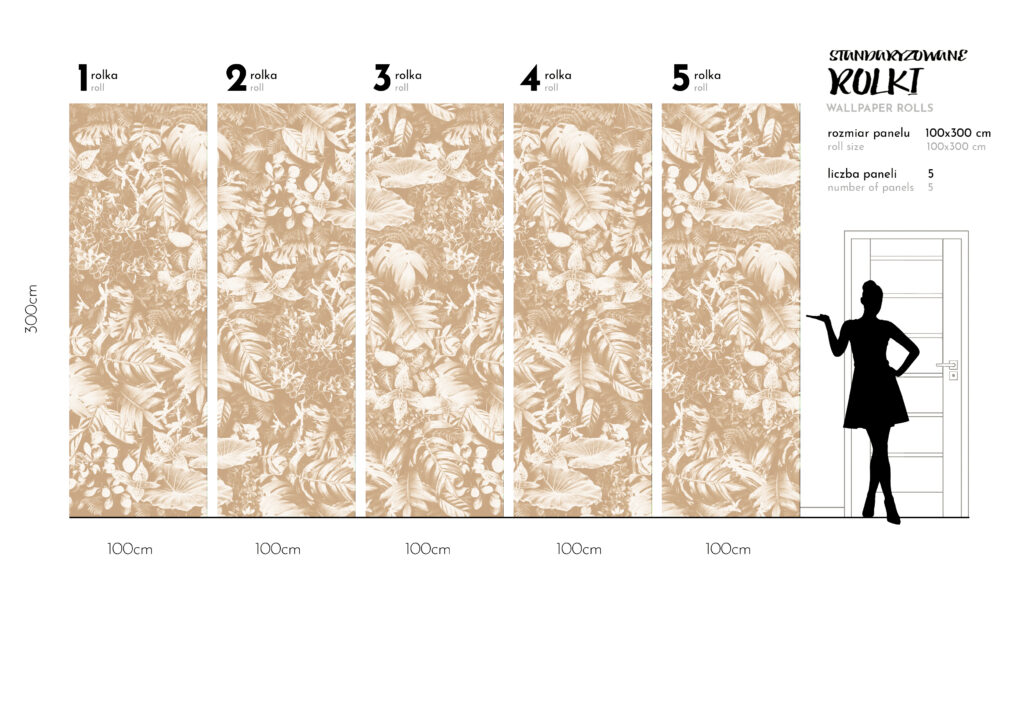 To tapety o stałej 1m szerokości brytów wysokich na 3m z ustaloną grafika pod wymiary 300 × 500 cm, czasami