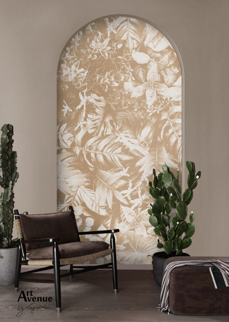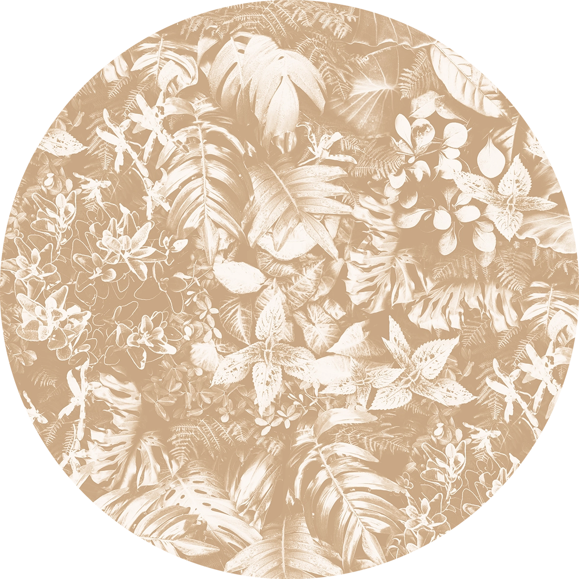 Ta roślinna propozycja w barwie ciepło-beżowej. Ze względu na swój potencjał przedstawiona została w wielu wariantach kolorystycznych, którymi odmienisz swoje otoczenie tworząc swój własny styl poza schematem. Artystyczna tapeta ścienna PREMIUM z motywem graficznym do zastosowania na ścianie, kaflach, meblach – w kształcie koła o średnicy 120 cm.