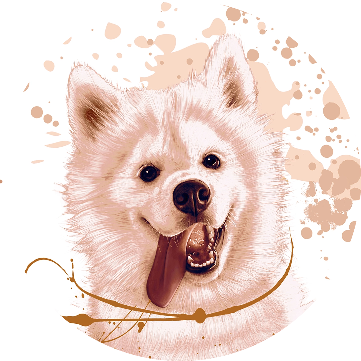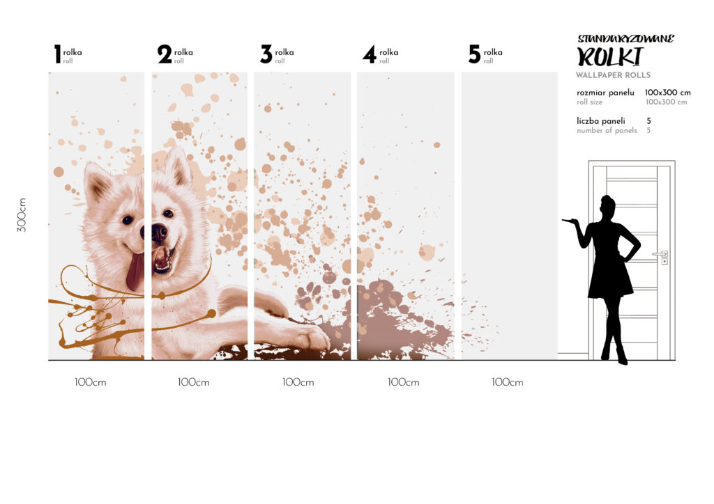 Urocza propozycja do pokoju dziewczynki z wizerunkiem psa rasy Samojed o cukierkowych barwach pastelowego różu z dodatkiem miodowego akcentu. Wywoła uśmiech na buzi dziecka nawet w ponury dzień. Artystyczna tapeta ścienna PREMIUM z motywem graficznym do zastosowania na ścianie, kaflach, meblach – w kształcie koła o średnicy 120 cm.
