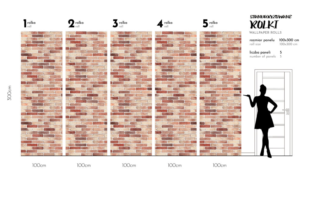 To tapety o stałej 1m szerokości brytów wysokich na 3m z ustaloną grafika pod wymiary 300 × 500 cm, czasami
