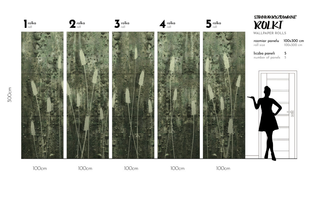 To tapety o stałej 1m szerokości brytów wysokich na 3m z ustaloną grafika pod wymiary 300 × 500 cm, czasami