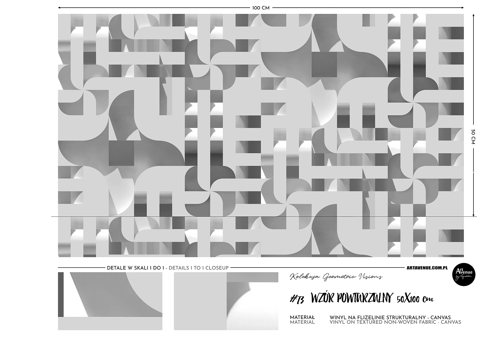 Tapety w kształcie łuku / koła produkowane są zawsze na folii polimerowej samoprzylepnej.