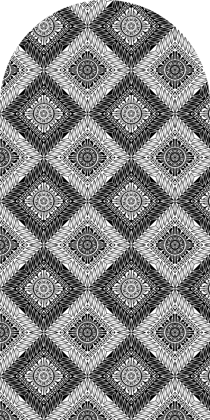 Motywy greckie zaprojektowane w sposób nowoczesny na tyle, aby móc odnaleźć się również w stylu eklektycznym i/lub boho. Fantastyczny wzór połączony jest z fragmentami imitującymi tynk. Artystyczna tapeta ścienna PREMIUM z motywem graficznym do zastosowania na ścianie, kaflach, meblach – w kształcie łuku o wymiarach 240×120 cm.
