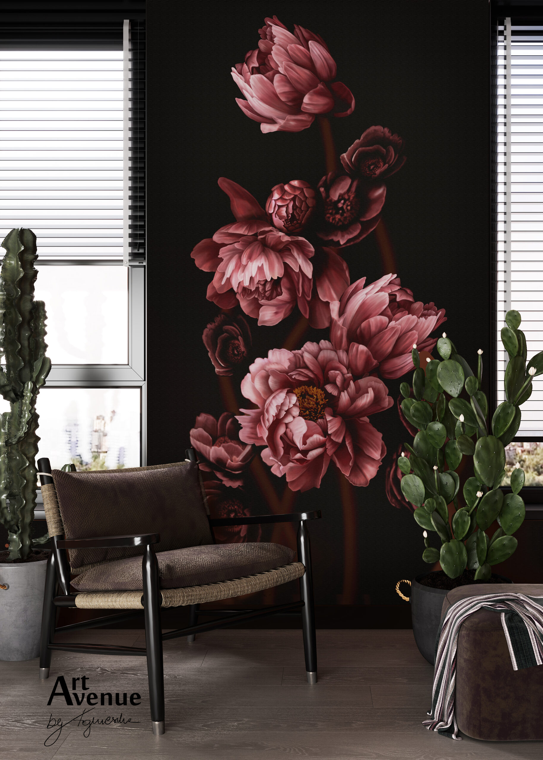 Tapeta z kobiecym kwiatowym wzorem jest pełna barw i kontrastu. Jeśli róż to Twój kolor, te piękne, malowane peonie zawrócą Ci w głowie. Poszczególne panele/rolki zaprojektowane są tak, aby móc wybrać najlepszy dla wnętrza fragment. Artystyczna tapeta ścienna PREMIUM z motywem kwiatowym – na rolki.